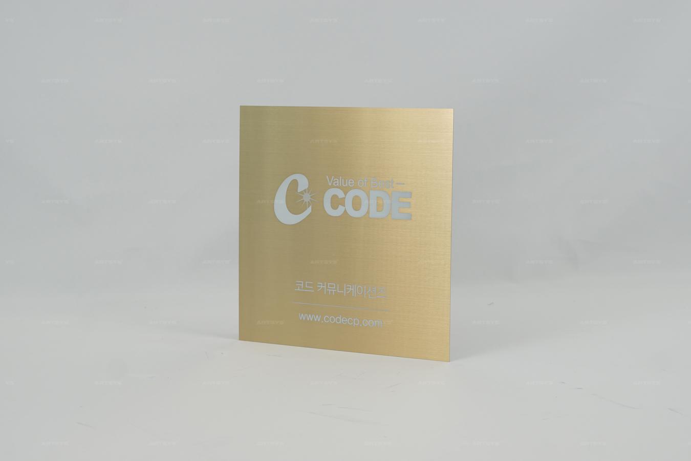 스테인리스 스틸 골드헤어라인 사인보드 - 코드 커뮤니케이션즈