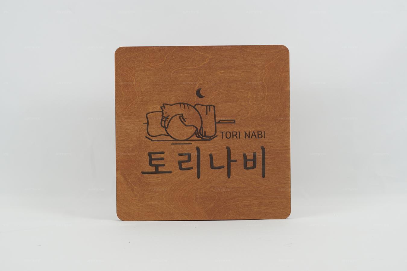 나무 재질의 AVENA 간판 - 건강하고 맛있는 삶