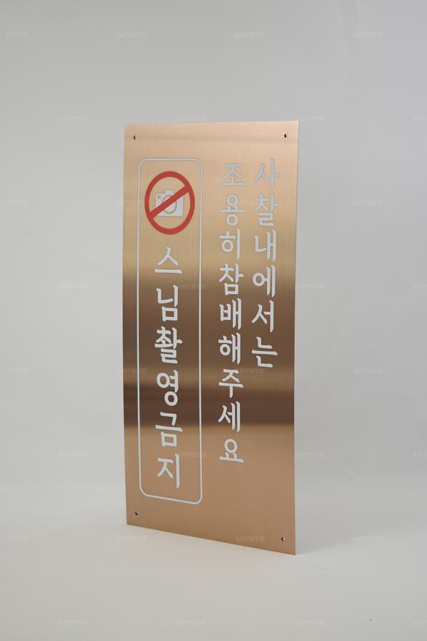 스테인리스 스틸 사찰 조용히 참배 안내 표지판
