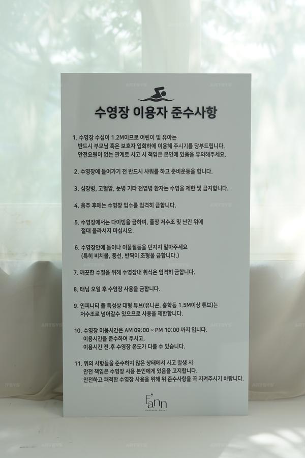 수영장 이용자 준수사항 안내판 - 안전한 수영을 위한 필수 수칙