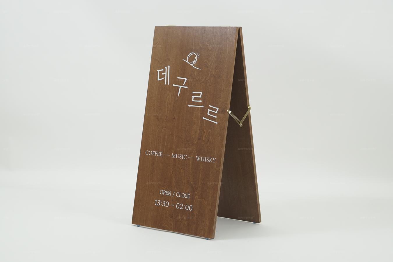 나무 입간판 - 달빛차래 카페 영업시간 안내