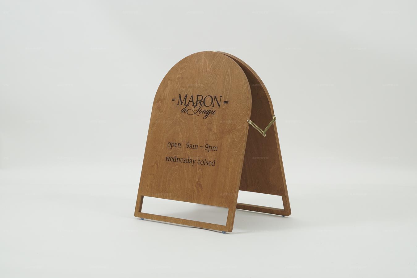 나무 입간판 - MARON de Jongju 영업시간 안내