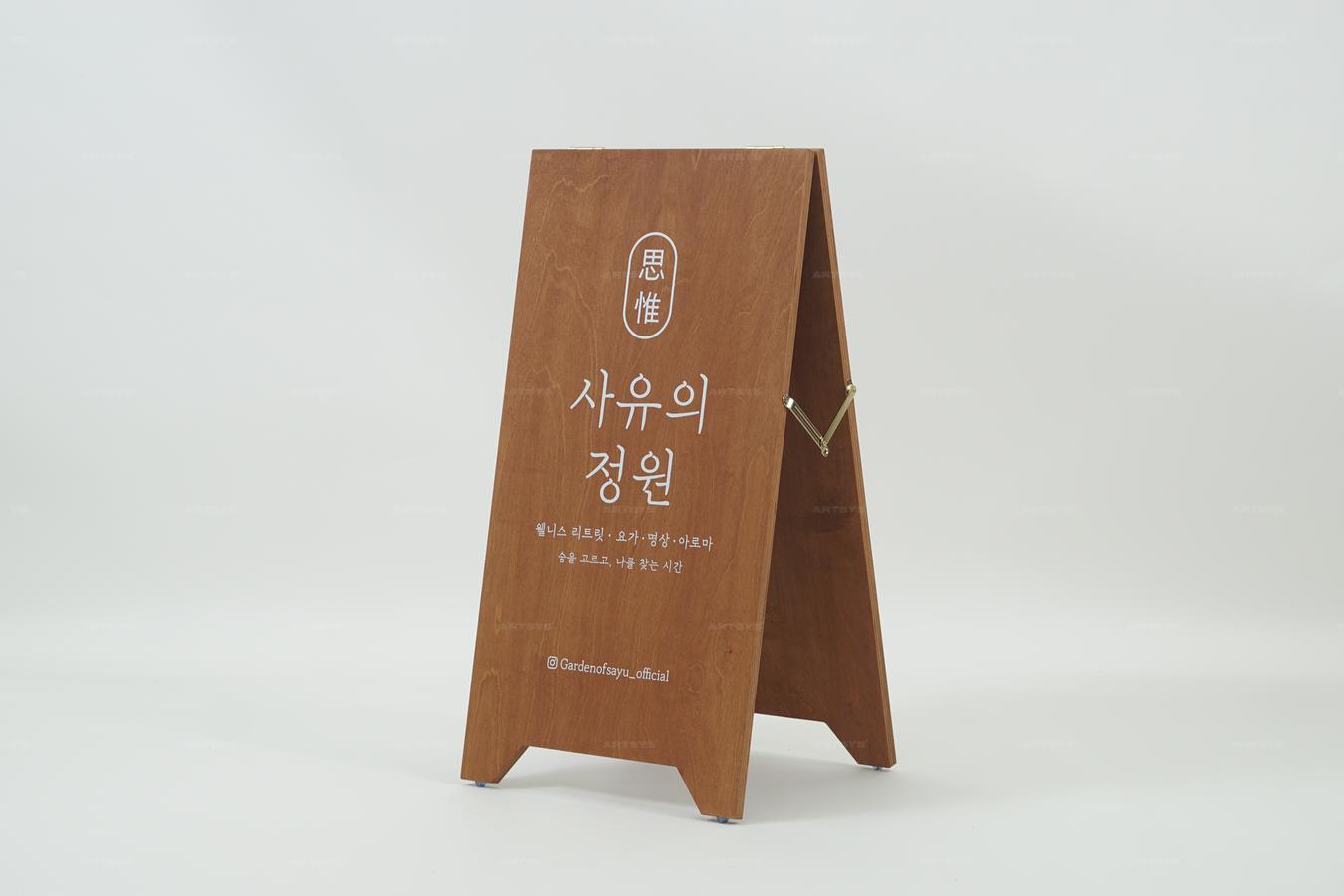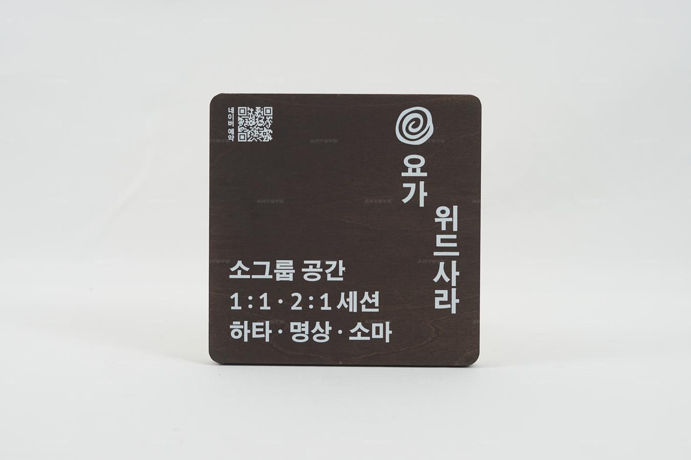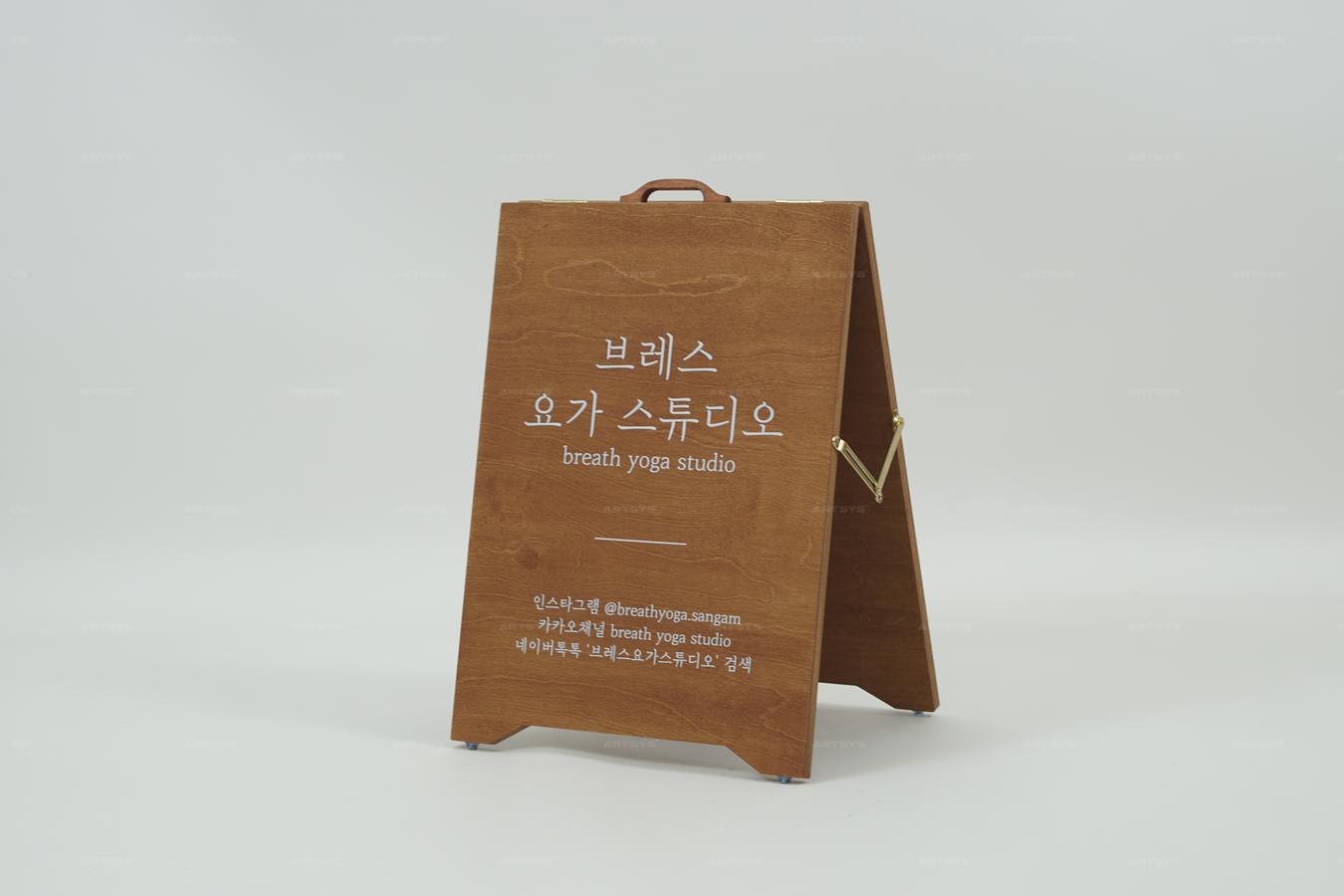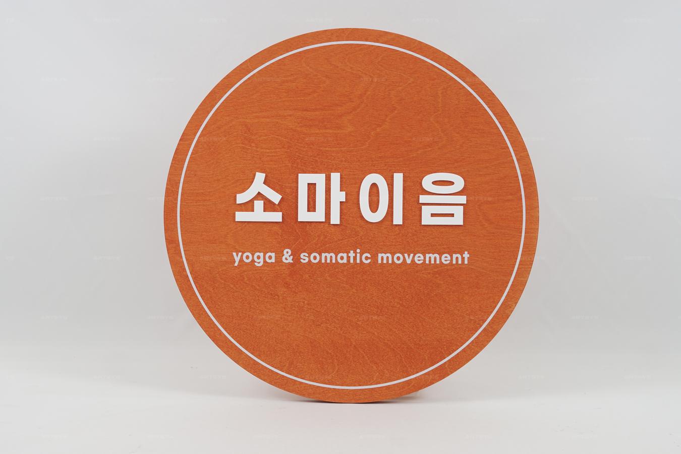 나무 소재의 요가스테이 간판, 균형 잡힌 삶을 위한 공간