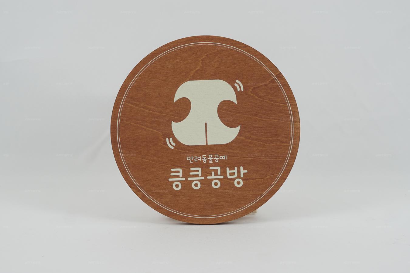 우드 소재의 반려동물 공예 크크공방 안내판