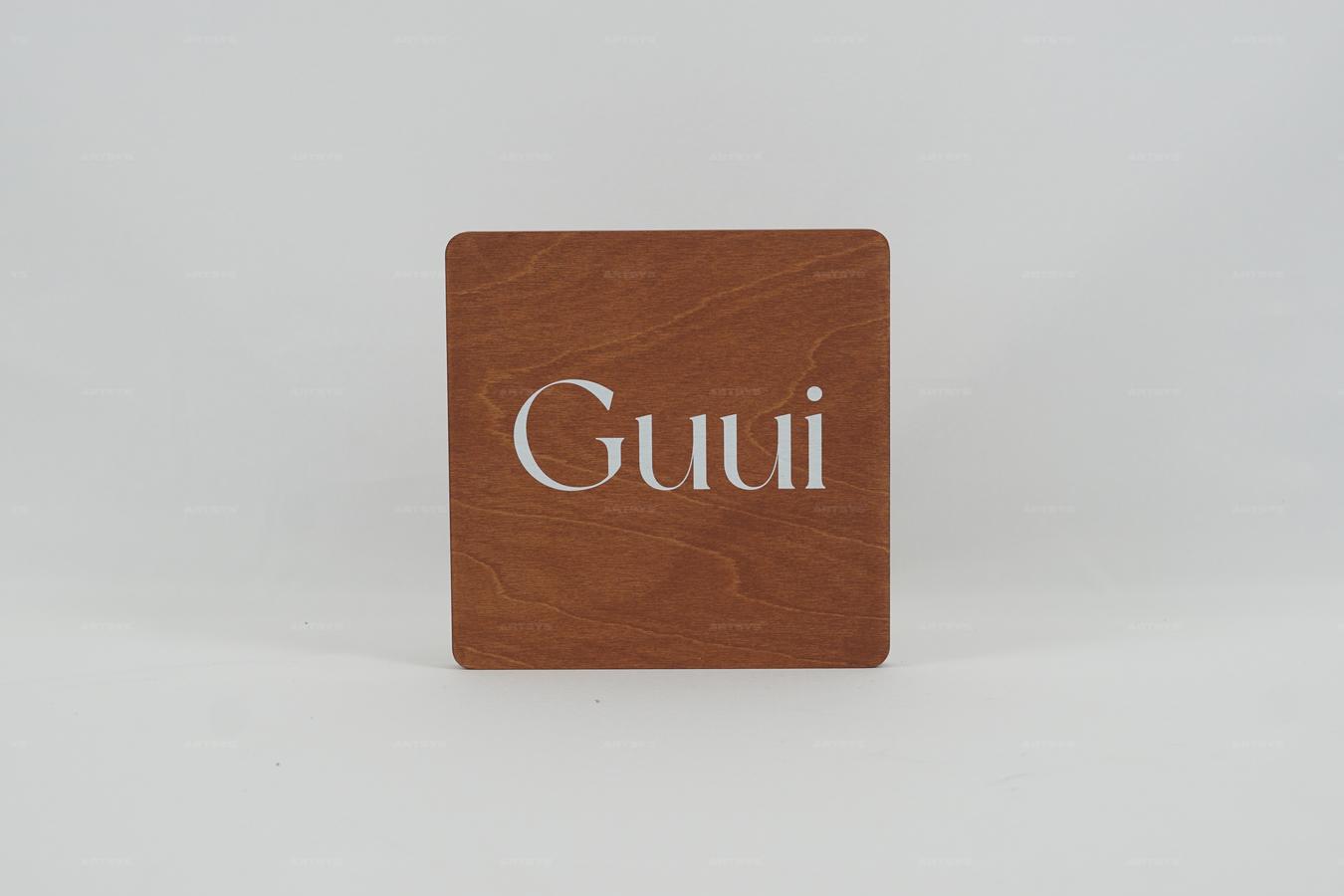 나무로 제작된 Guui 간판