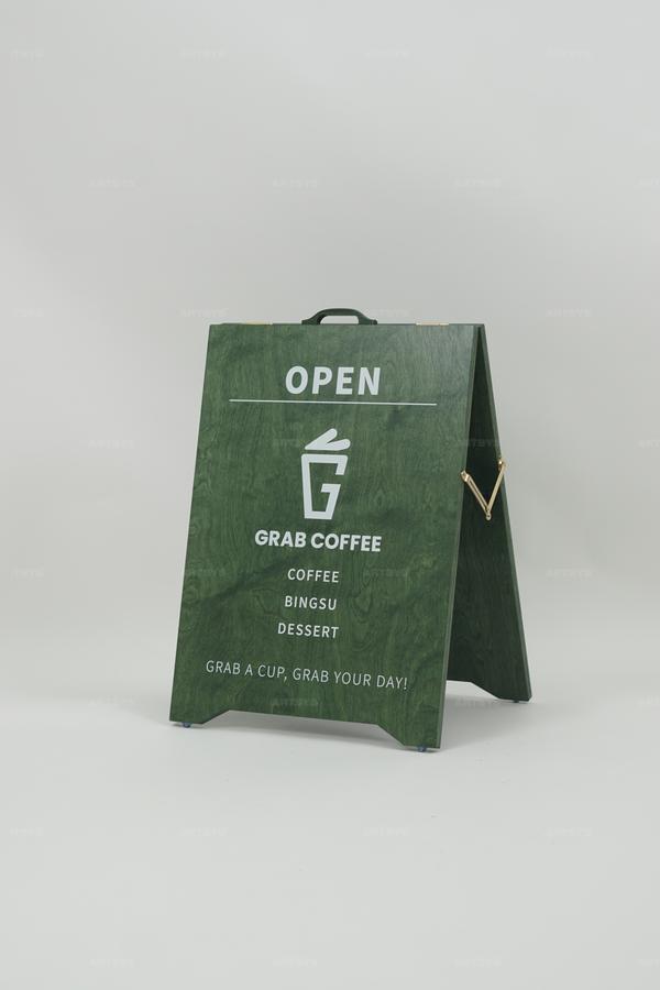 우드 입간판 - 그랩 커피 오픈 안내