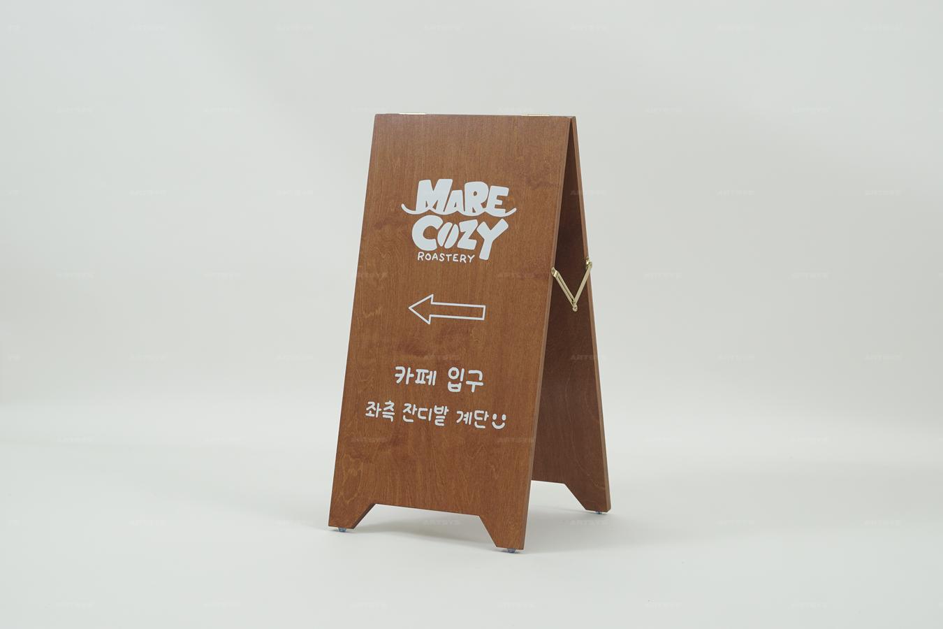우드 입간판 카페 안내 - 자연스러운 나무 느낌