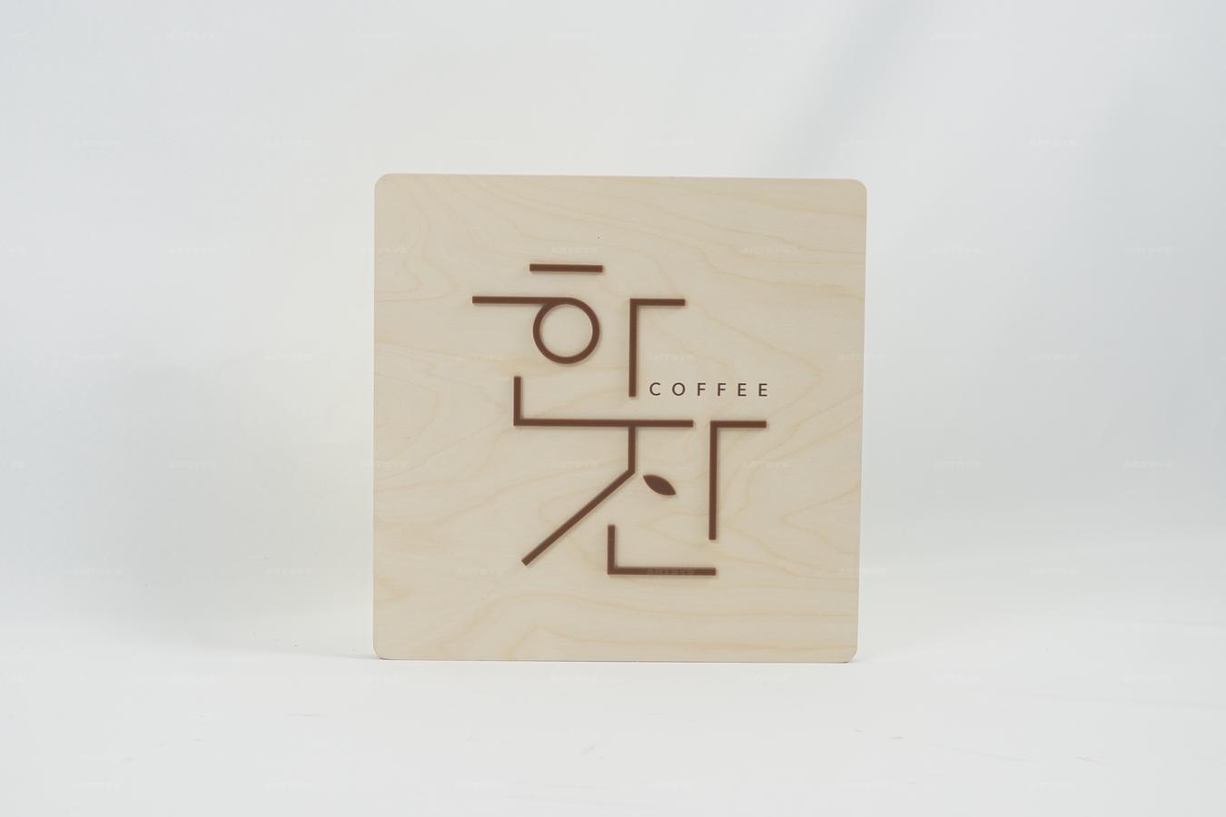 나무 소재 한잔 커피 간판