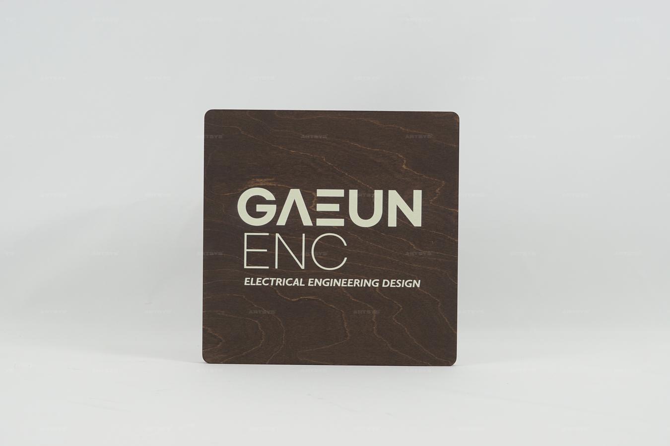 나무 소재의 전기공학 디자인 간판