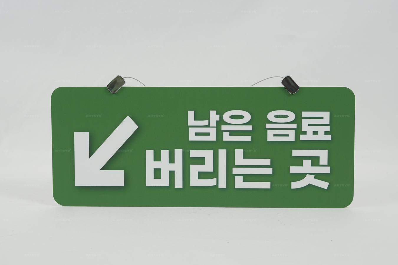 남은 음료 버리는 곳 안내판 - 초록색 아크릴 간판