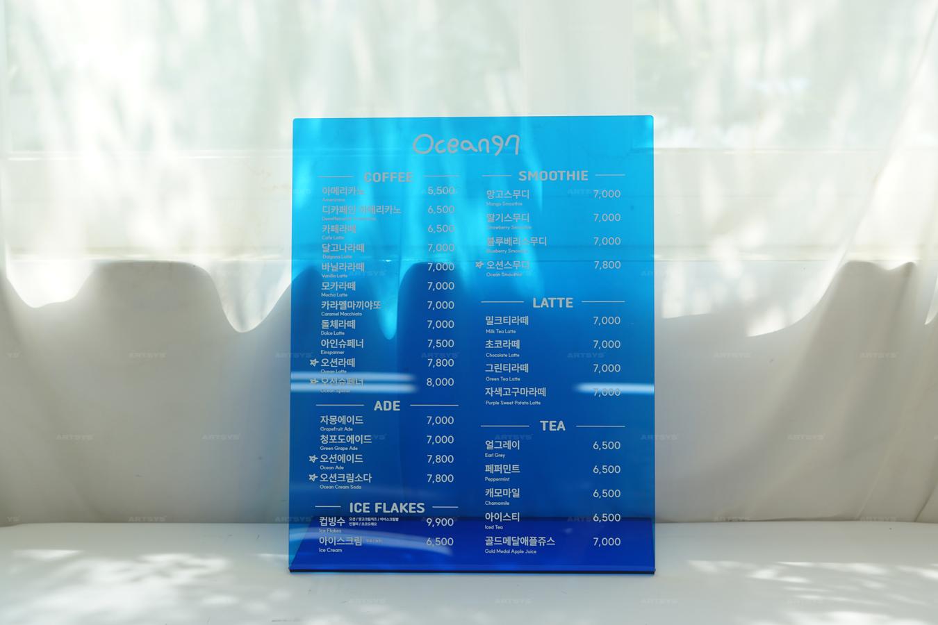 오션91 아크릴 메뉴판 - 다양한 음료와 디저트를 만나보세요