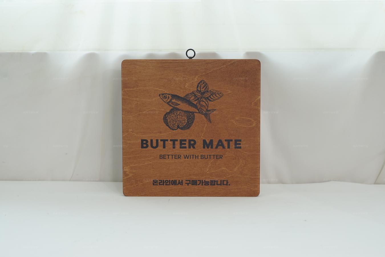 나무 재질의 버터 메이트 간판