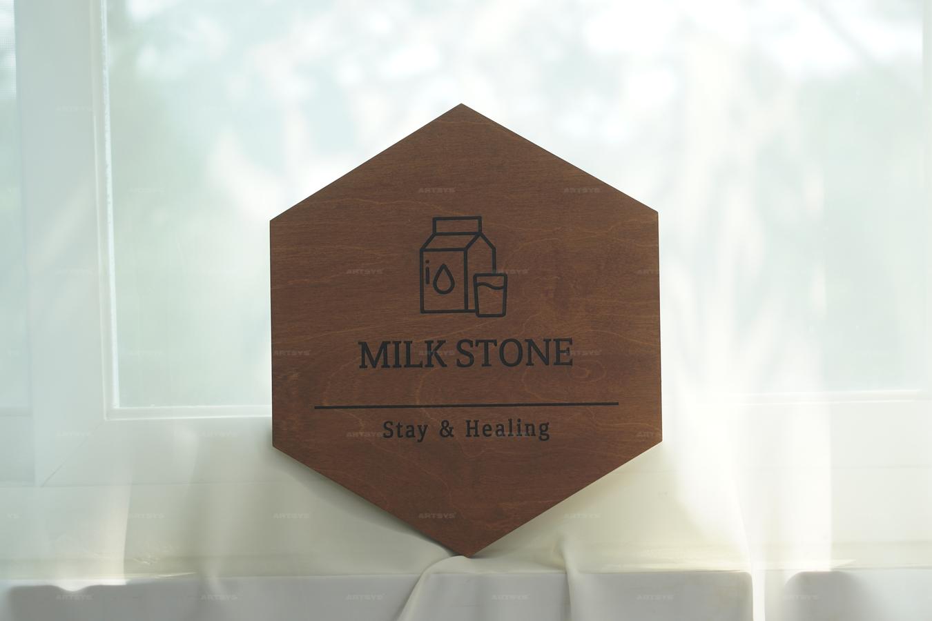 우드 소재의 THE MOON STAY 간판 - 한국의 편안함과 치유를 위한 게이트웨이