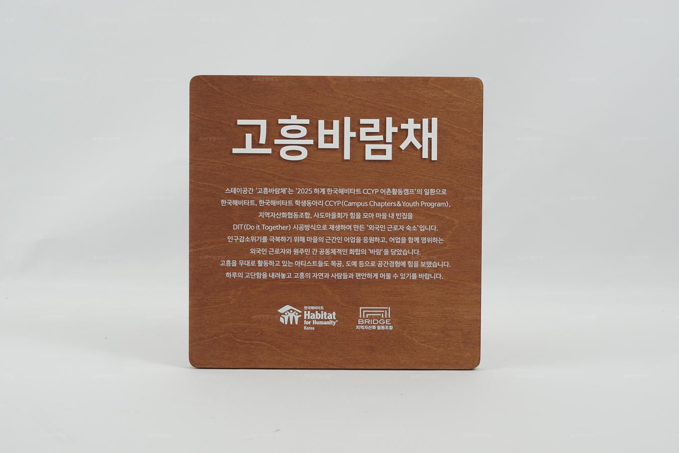 나무 재질의 극단 프로젝트 비에 간판