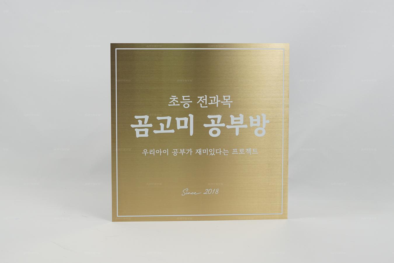 골드 스테인리스 스틸 곰고미 공부방 간판